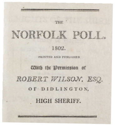 | Candidate | Total votes in Norfolk | Forehoe Hundred | Total votes in Deopham |