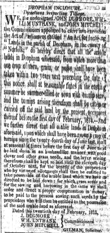 The following announcement was also placed in the Norfolk Chronicle published on February 27th 1813:
