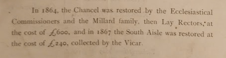 “In 1867 the south aisle was restored at a cost of £240“. (According to Kelly’s 1883 Directory)
