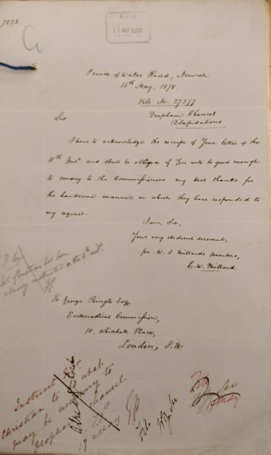 Letter from Ecclesiastical Commissioners Nov 11th 1877