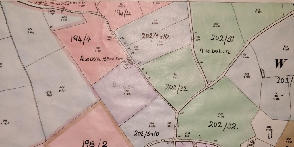The farm is shown in purple and is labelled “HOWES” on the map below (the farm number is not shown on the map, unlike almost all other farms).