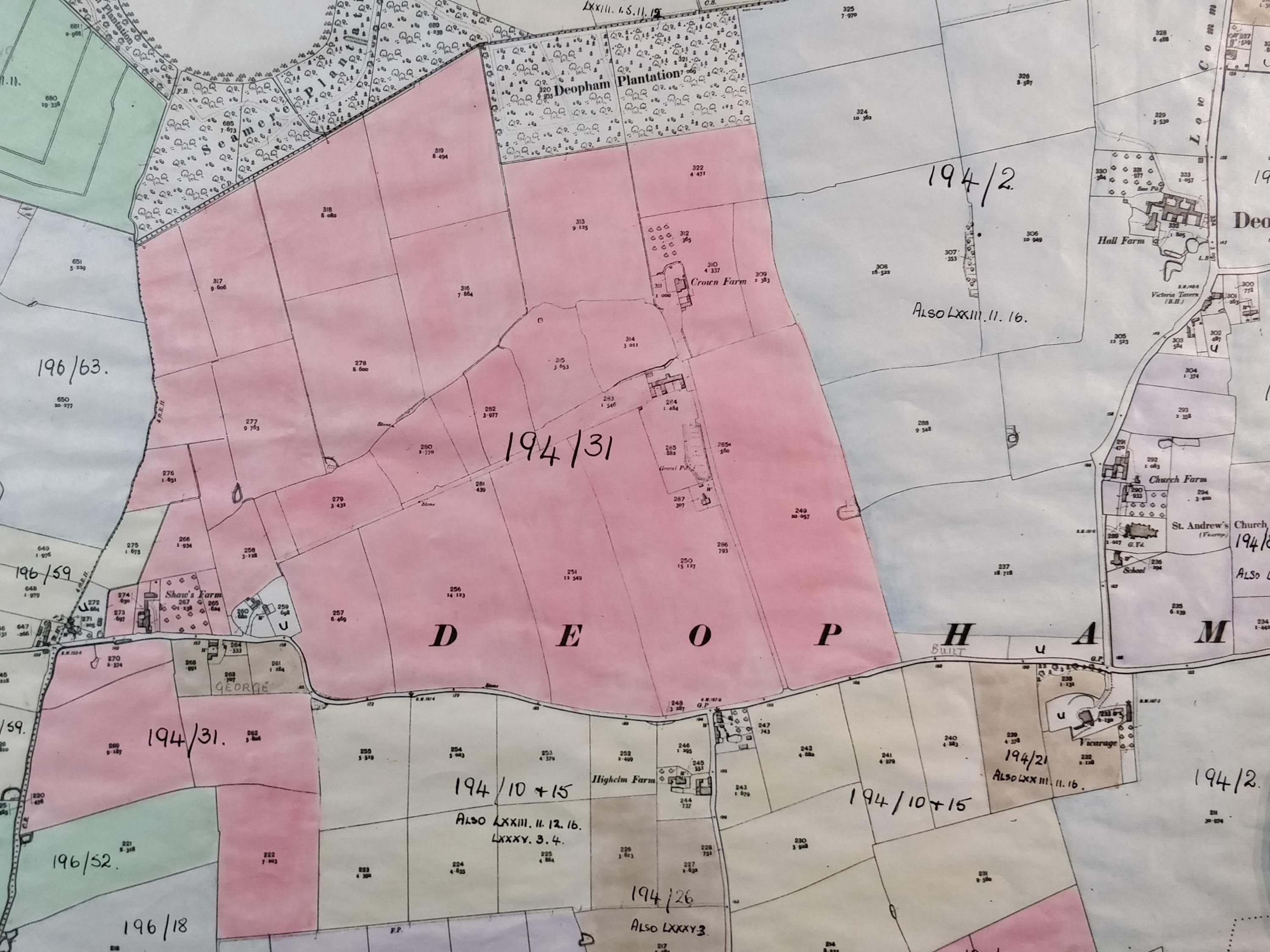 Shaw’s Farm has not been separated from Crown Farm (coloured pink, ref 194/31) on the map produced by the MAFF; this seems to have been the cartographer’s error: