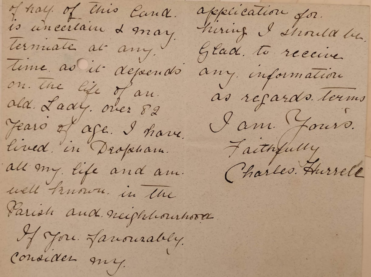 1897 Application by Charles Hurrell to take on the lease of Church Farm