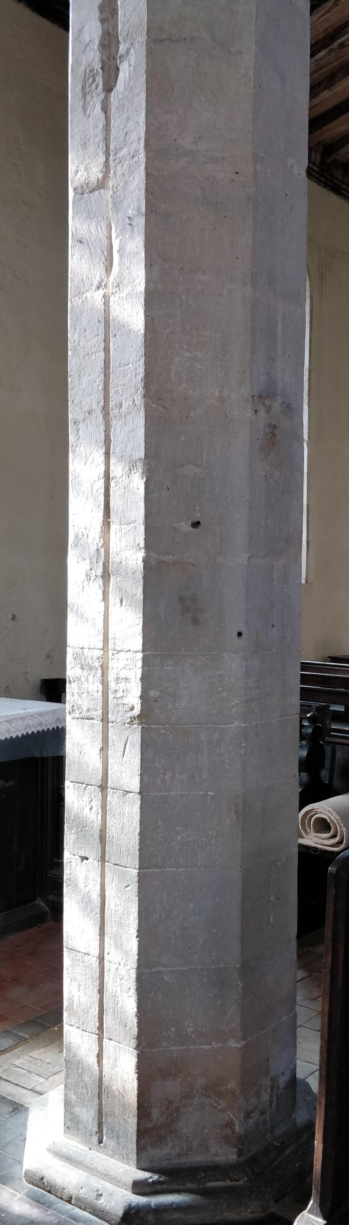 A slot has been cut into the west side of the northern chancel arch to a height of 1.22m.