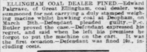 Fred Bales started a coal delivery round based at the cottage which used to stand opposite Old Man’s Farm on the road to Hingham out of Deopham.