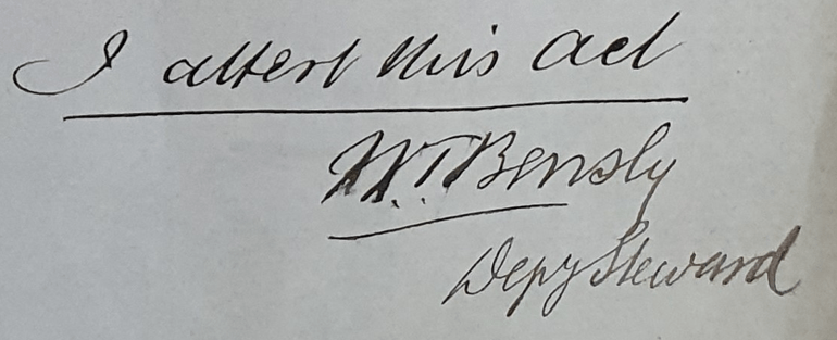 | Steward | William Thomas Bensly LL.D, Deputy Steward |