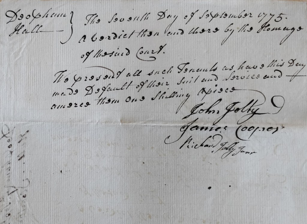 All such Tenants as that Day made Default of their Suit and Service were amerced one Shilling each.