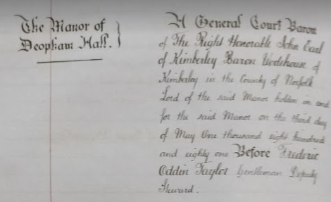 | Title | The Manor of Deopham Hall. A General Court Baron of The Right Honourable John, Earl of Kimberley, Baron Wodehouse of Kimberley |