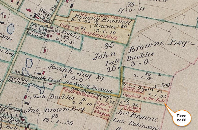 - All of the Manor of Deopham Hall copyhold pieces identified by the Inclosure Commission were transacted at this court.