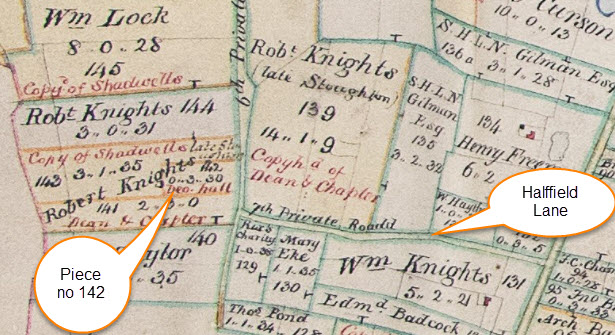 | January 20th 1801 under the Will of James Garthon | Joseph Say | Daniel Alexander the Younger | Before Inclosure: 2 acres of land (“as more particularly described in the Rolls of the Court”); Inclosure Commission award: 2 acres 1 rood & 35 perches – piece no 88 on the 1814 map13. | None | |||