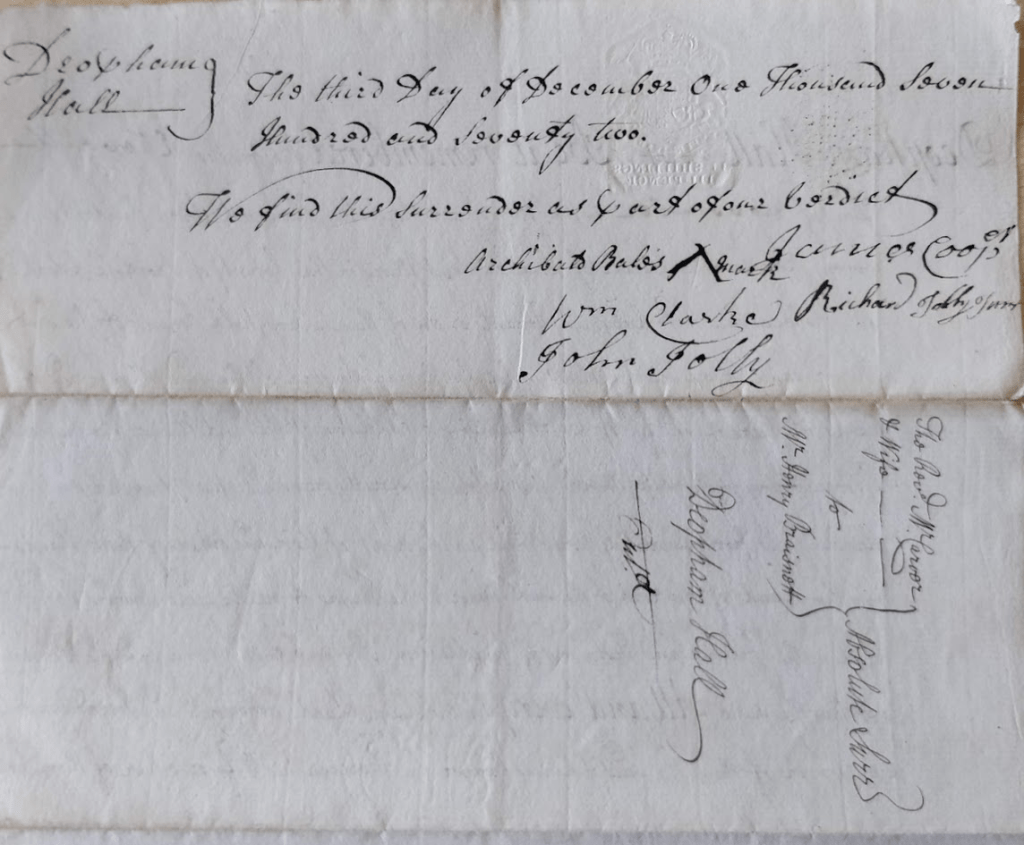| Thomas Rowing having received £53 2s 6d in redemption of his mortgage | May 25th 1772: Richard Jolly – conditional surrender at Court of February 25th 1771 is cancelled. | ||||||