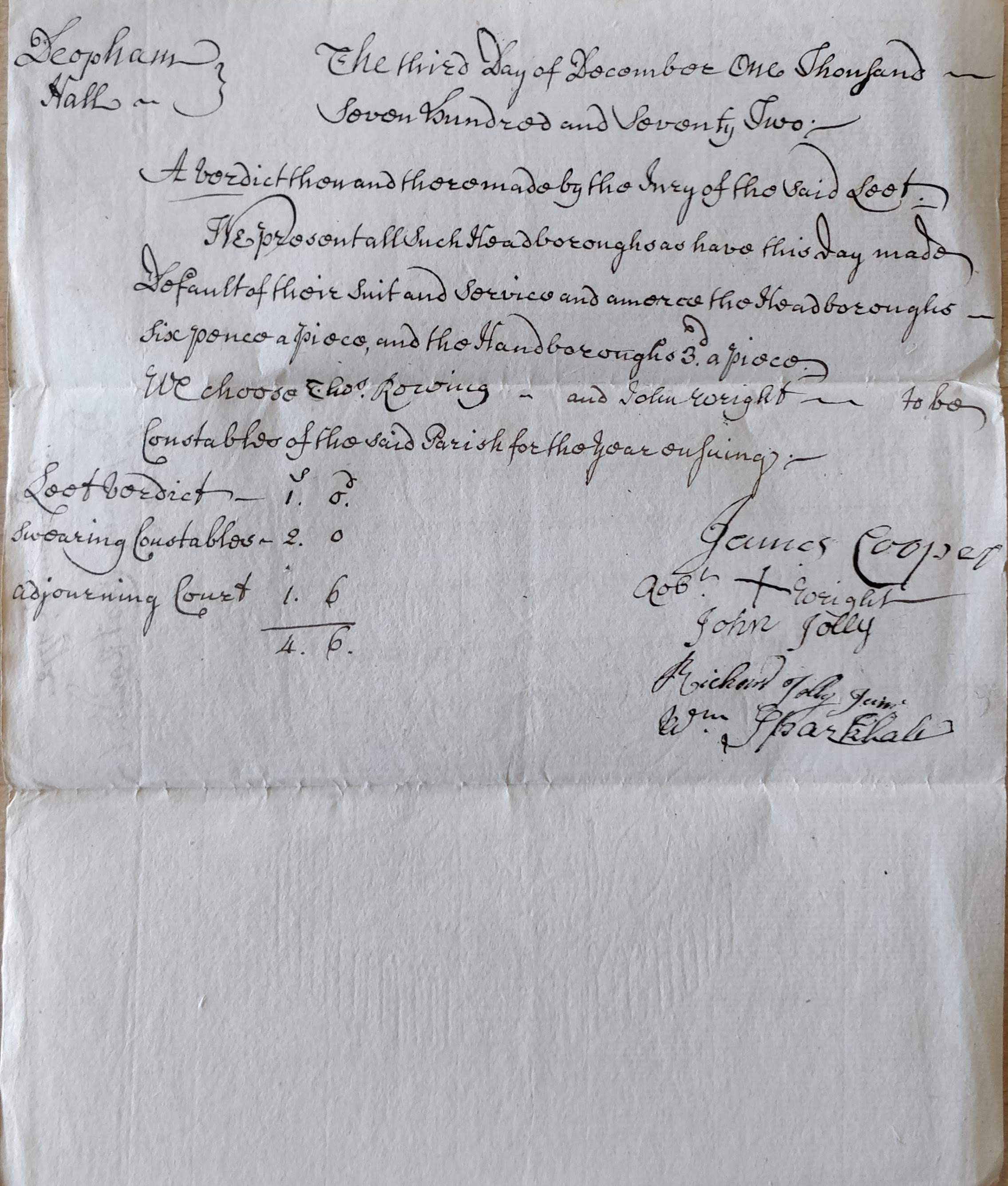 | Title | Deopham Hall The General Court Baron with a Leet & Petty Sessions |