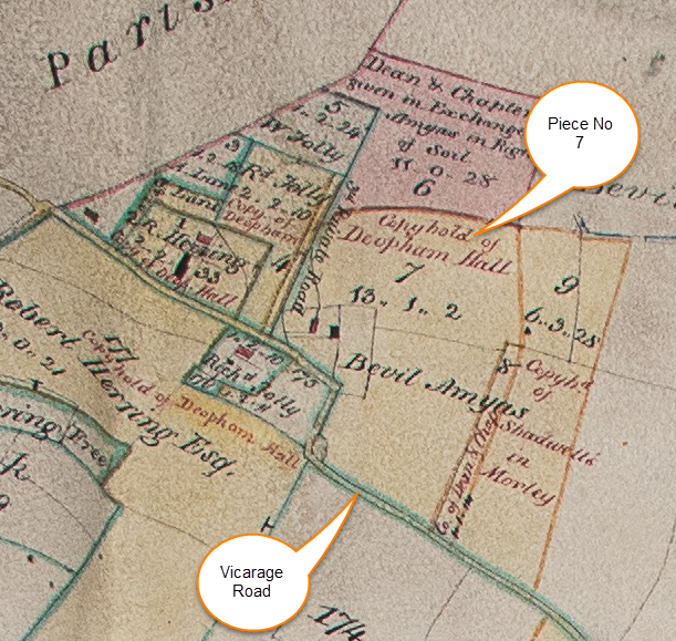 | Bevil Amyas (deceased) | 1st Proclamation: November 22nd 1877 2nd Proclamation: January 22nd 1878 3rd Proclamation: April 30th 1878 “made three times with a loud voice” | Nobody came forth so a warrant was issued at the last Court to the bailiff (Charles Hurrell) to seize the lands & tenements into the hands of the Lord of the Manor. The Bailiff confirmed on April 30th 1878 that the lands & tenements had been seized. | Piece nos 7 & 36 on the Deopham 1814 Inclosures Map |