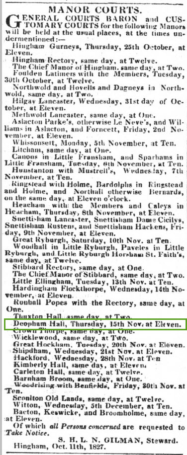 Norfolk Chronicle, October 20th 1827:-