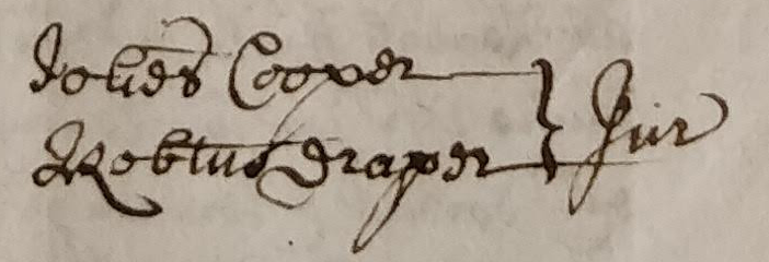 | Stephen Harrison Daniel Wright William Neave Robert Pitts Thomas Linkhorne Robert Borrowes … Andrews [no forename recorded] | Robert Bullocke Daniel Holt John Oakeley Thomas Childerhouse William Poole, junior Francis Thimblethorpe Thomas Norman |