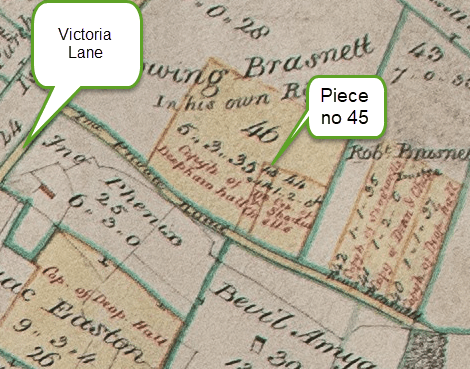 | Thomas Rowing Brasnett of Hilborough, Farmer, son & heir of John Jolley Brasnett of Hilborough (deceased) | October 13th 1845 | Purchased by Robert Phoenix of Deopham, Farmer for £680 including £5 for the purchase of the Copyhold rights. This money was paid to the Bank of England following the case at the Court of Chancery. | Henry Thouless | 1 rood & 14 perches, piece no 45 on the map attached to the Inclosure Commission’s awards of 1814.1 | 16s |