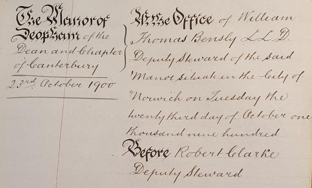 | Location | At the Office of William Thomas Bensly LL.D, Deputy Steward |