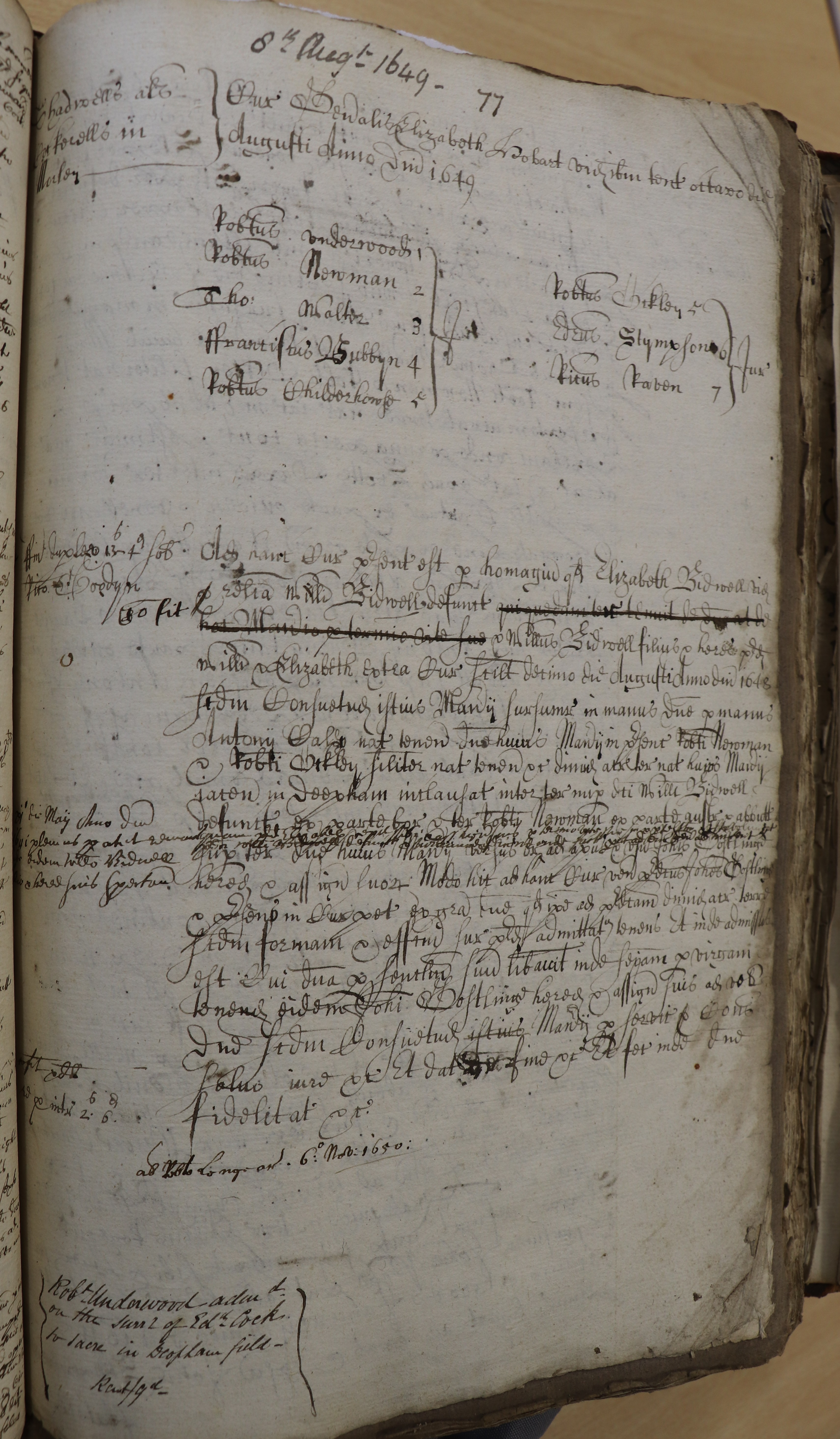 - It has been noted in the margin that Robert Longe, ar, was admitted to this land at the Court of November 6th 1650 ↩︎