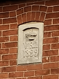 This plaque dating the cottages to 1899, in the reign of Queen Victoria, is set into the front of the cottages.