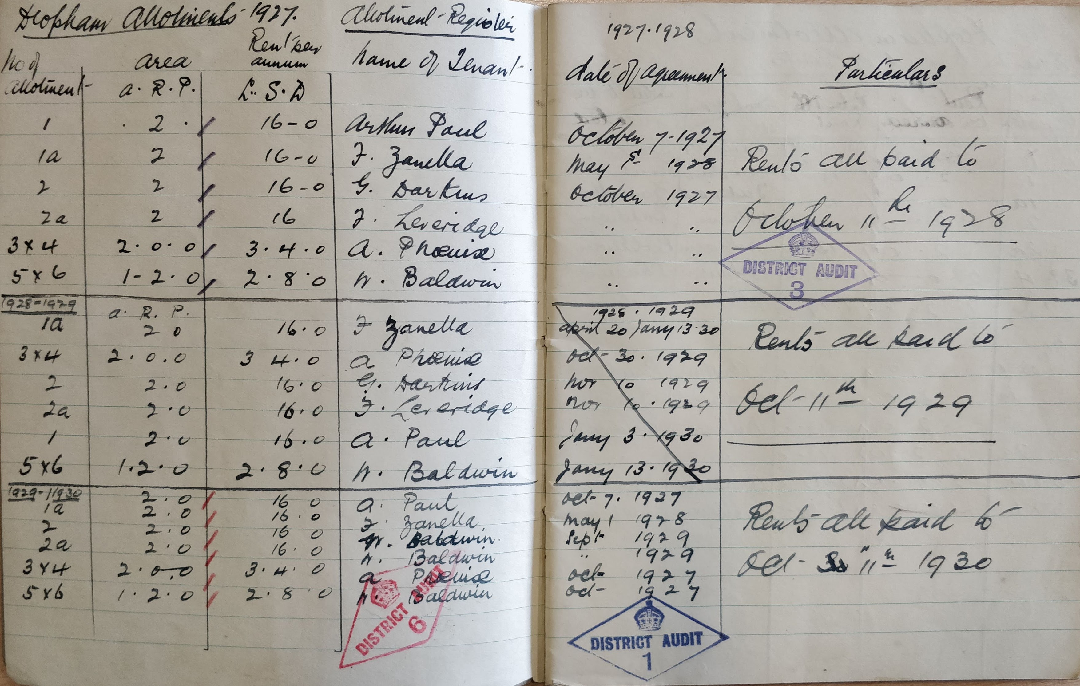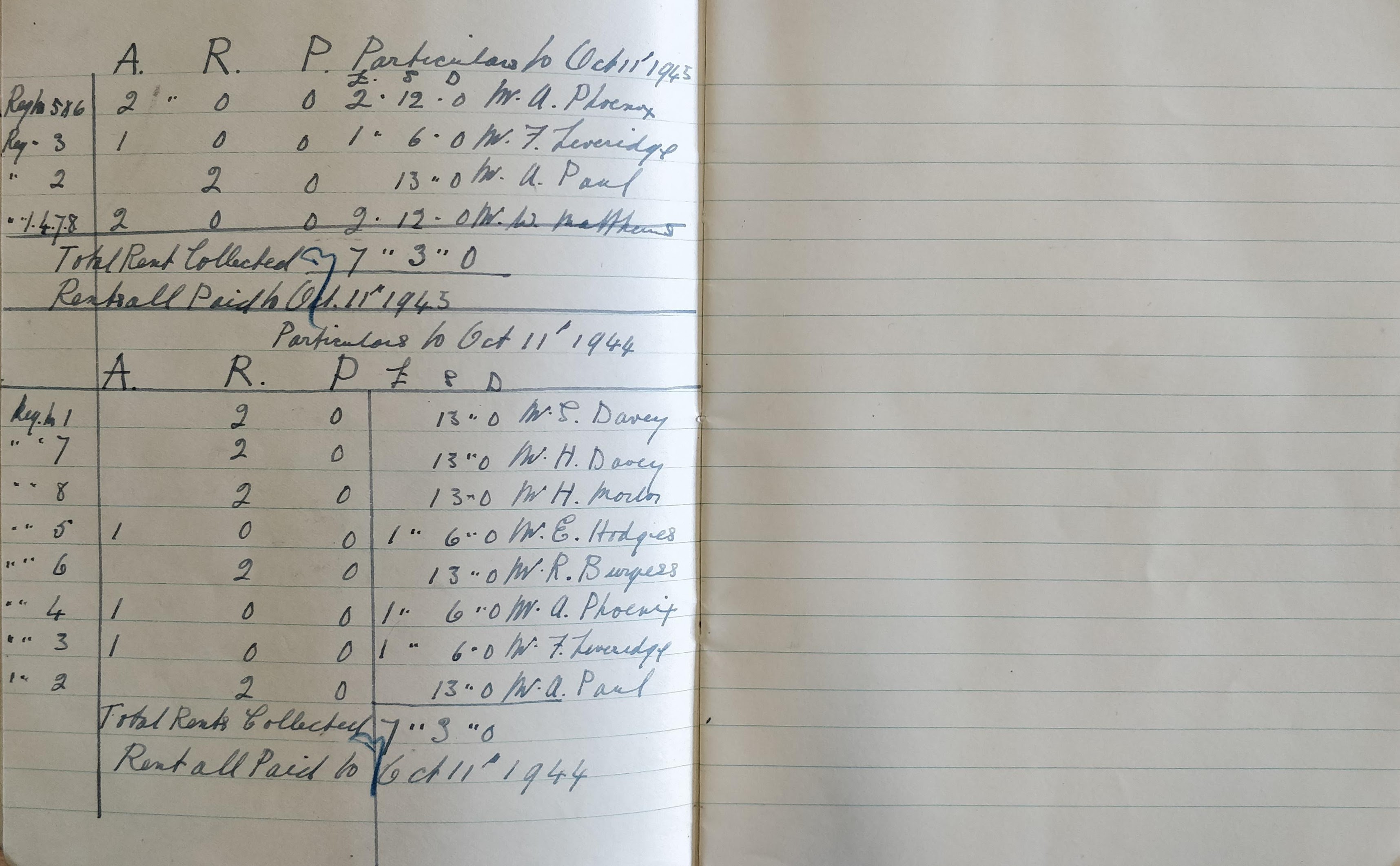 This book covers the rent collections for the allotments over the period from October 1927 to October 1944.