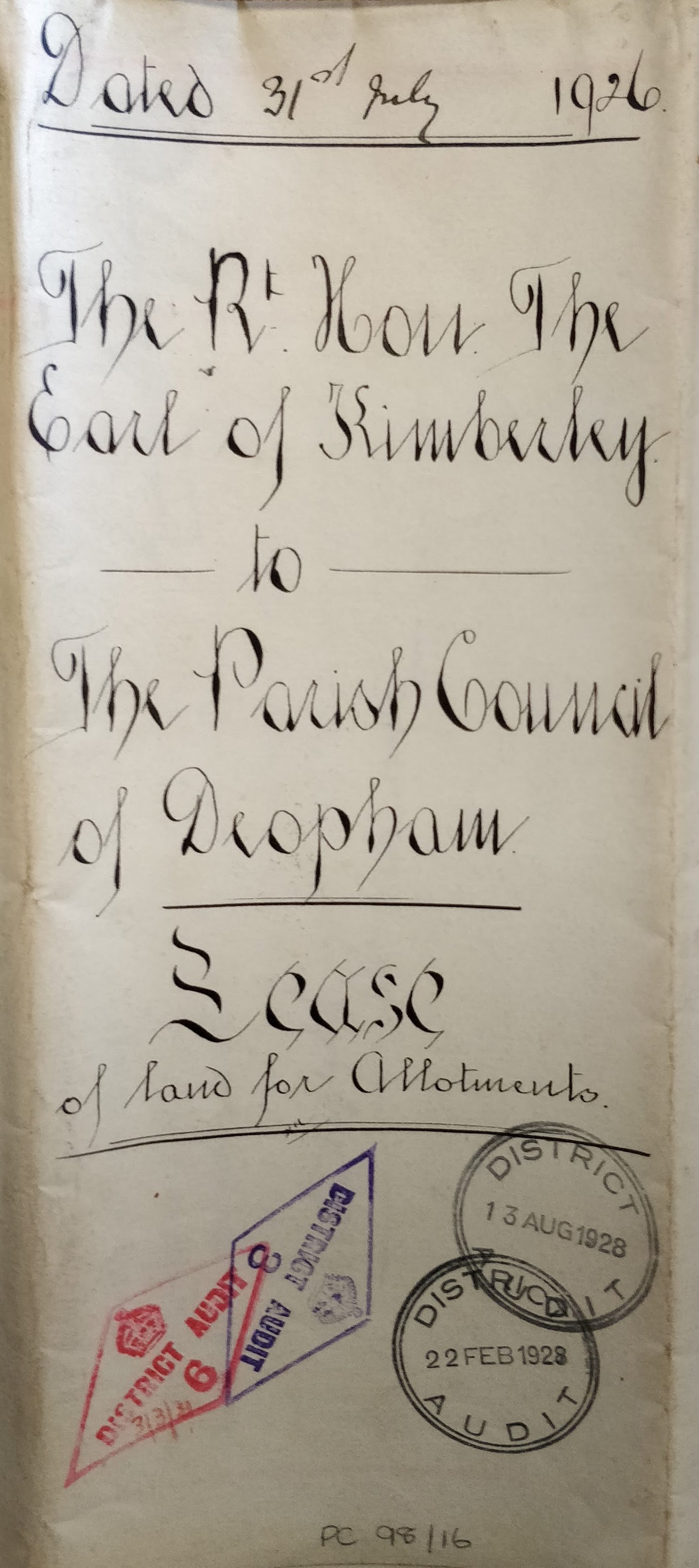 A lease was agreed between the Right Honourable John, Earl of Kimberley, and the Parish Council of the Parish of Deopham on July 31st 1926. This is a decade after the allotments were shown on the Ordnance Survey map reproduced above.