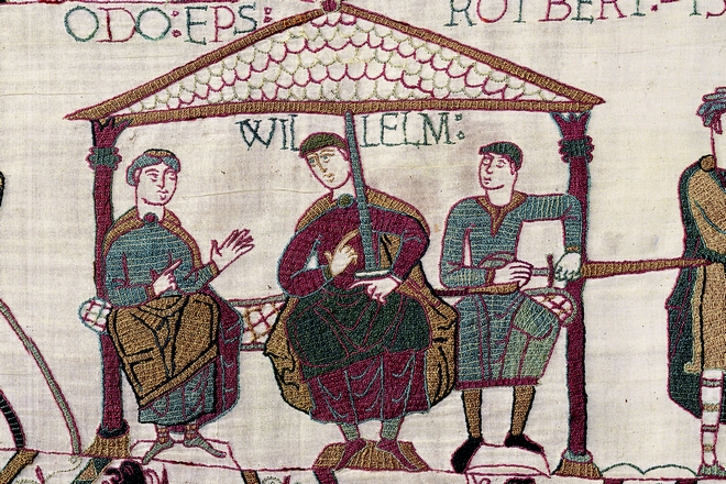 [William] was at that time sojourning at Valognes, for his pleasure as well as on business; and had been engaged for several days hunting and shooting in the woods. One evening late his train had left his court, and all had gone to rest at the hostels where they lodged, except those who were of his household; and he himself was laid down. Whether he or not I do not know, but in the season of the first sleep, a fool named Golets came, with a staff slung at his neck, crying out at the chamber door, and beating the wall with the staff; “Ovrez!” said he, “Ovrez! ovrez! ye are dead men: levez. levez! Where art thou laid, William? Wherefore dost thou sleep? If thou art found here thou wilt die; thy enemies are arming around; if they find thee here, thou wilt never quit the Cotentin, nor live till the morning!”