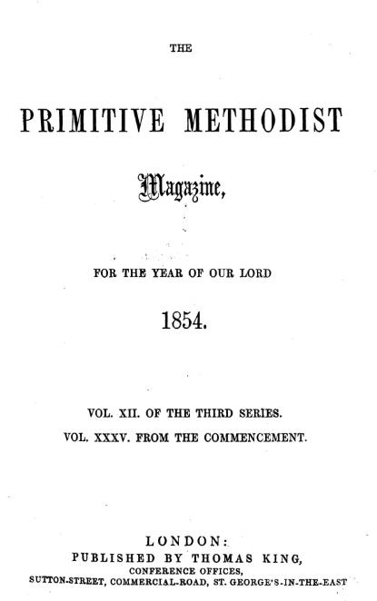 The following article appeared on pages 171 & 172 of the Primitive Methodist Magazine published in 1854.