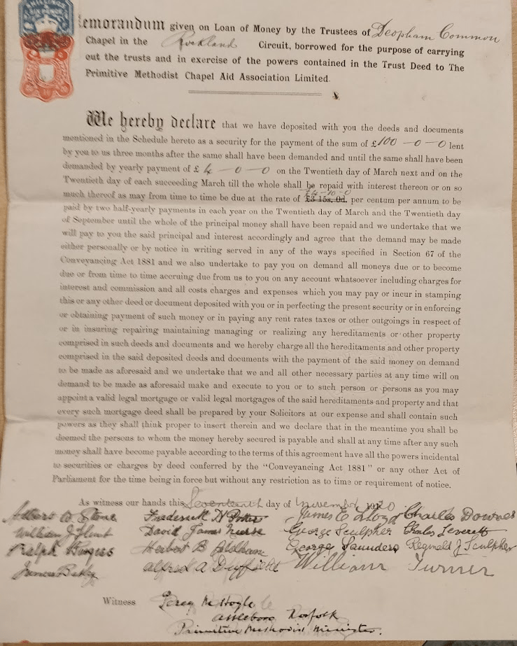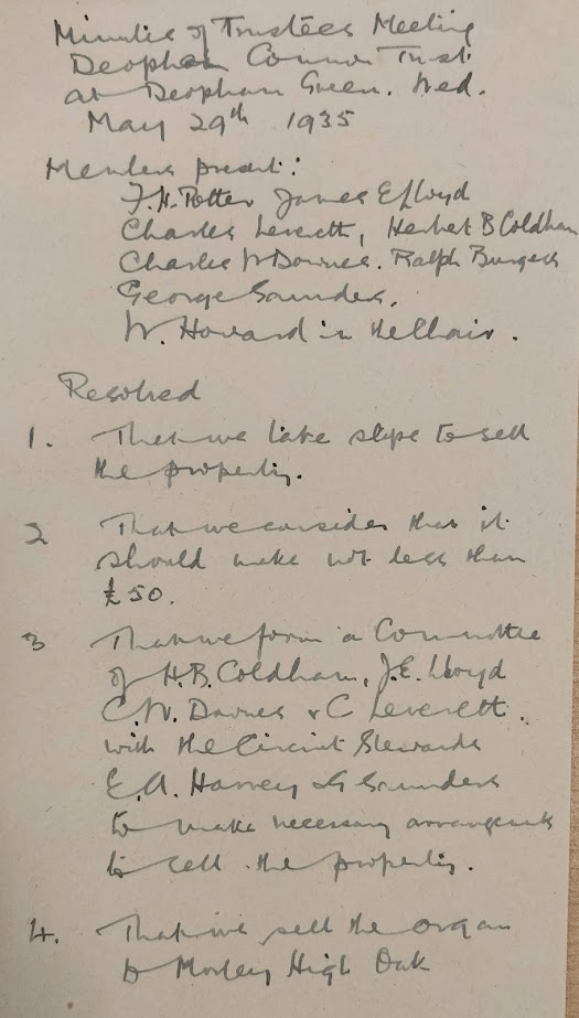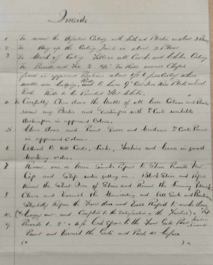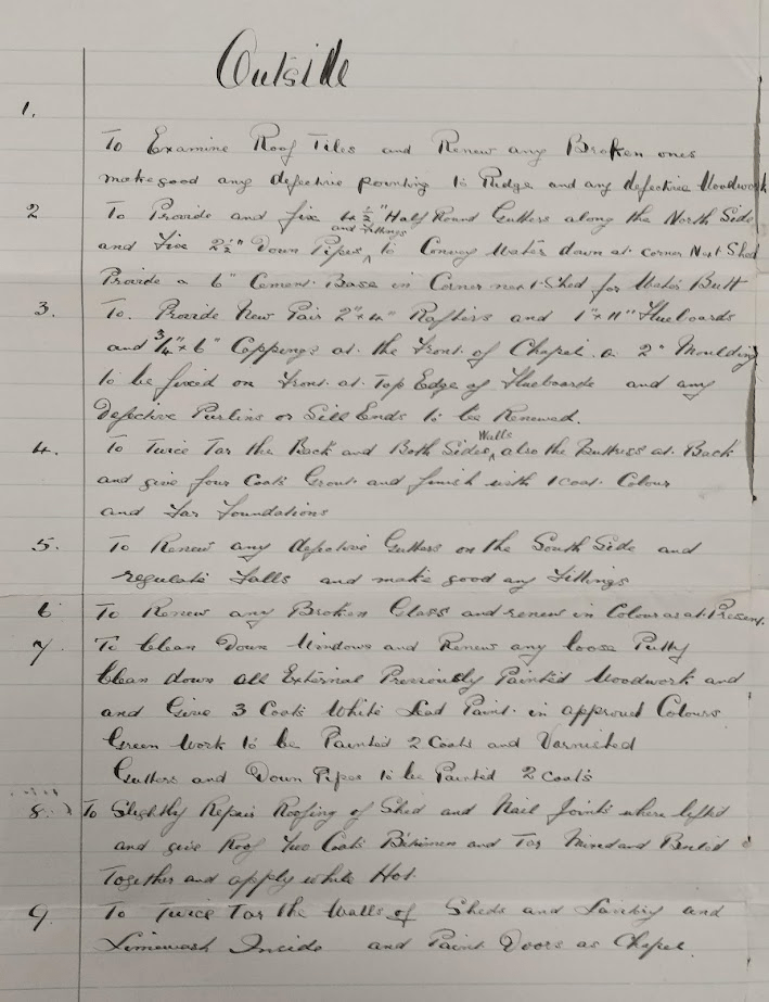 The following document is undated, but presumably refers to the repairs carried out by Mr Pooley in 1920.