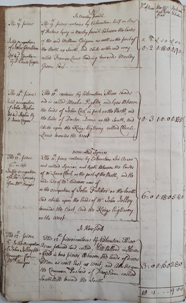| 9 | In Morley Parish | Let to John Garnham by James Cooper | 0a 2r | ||||