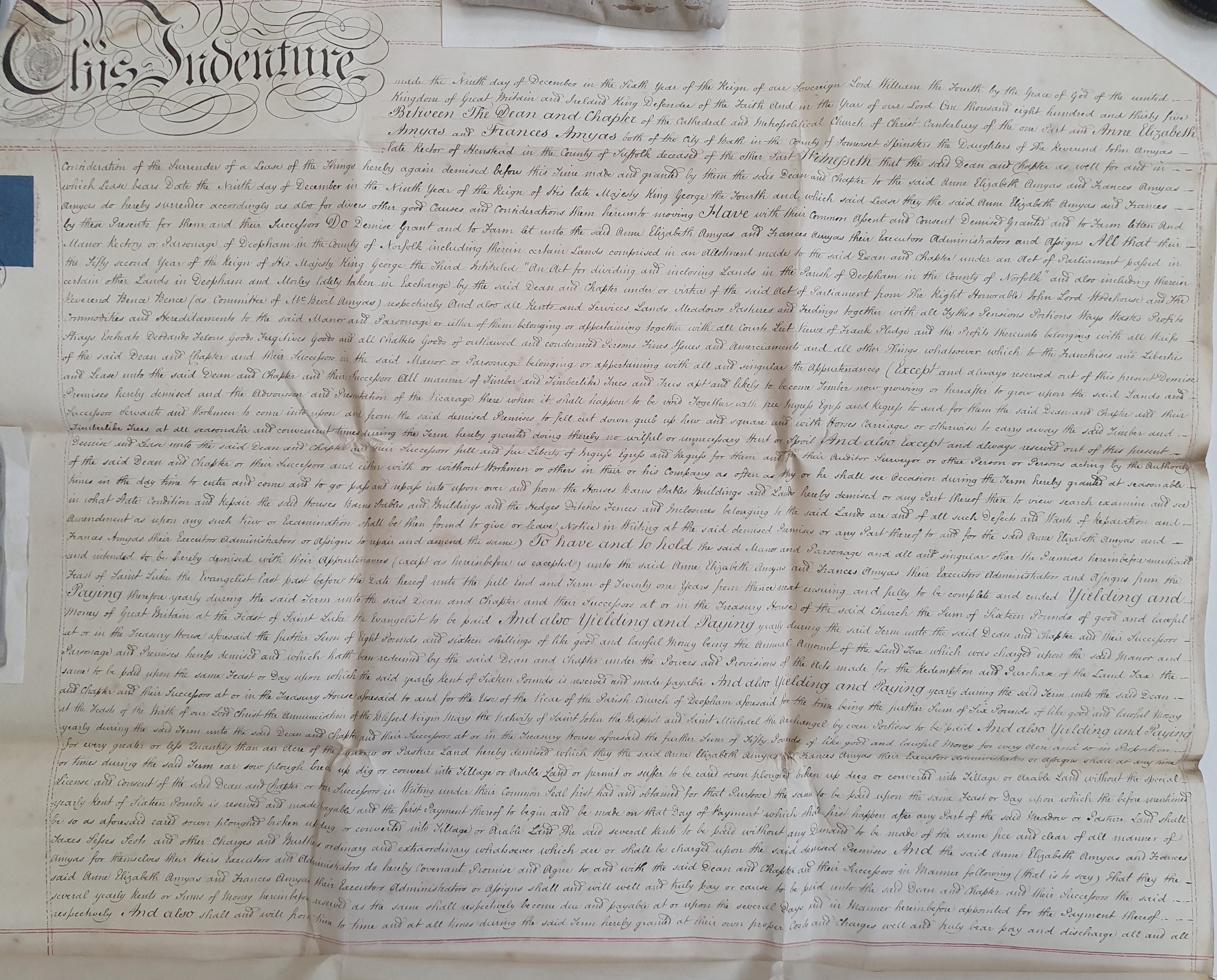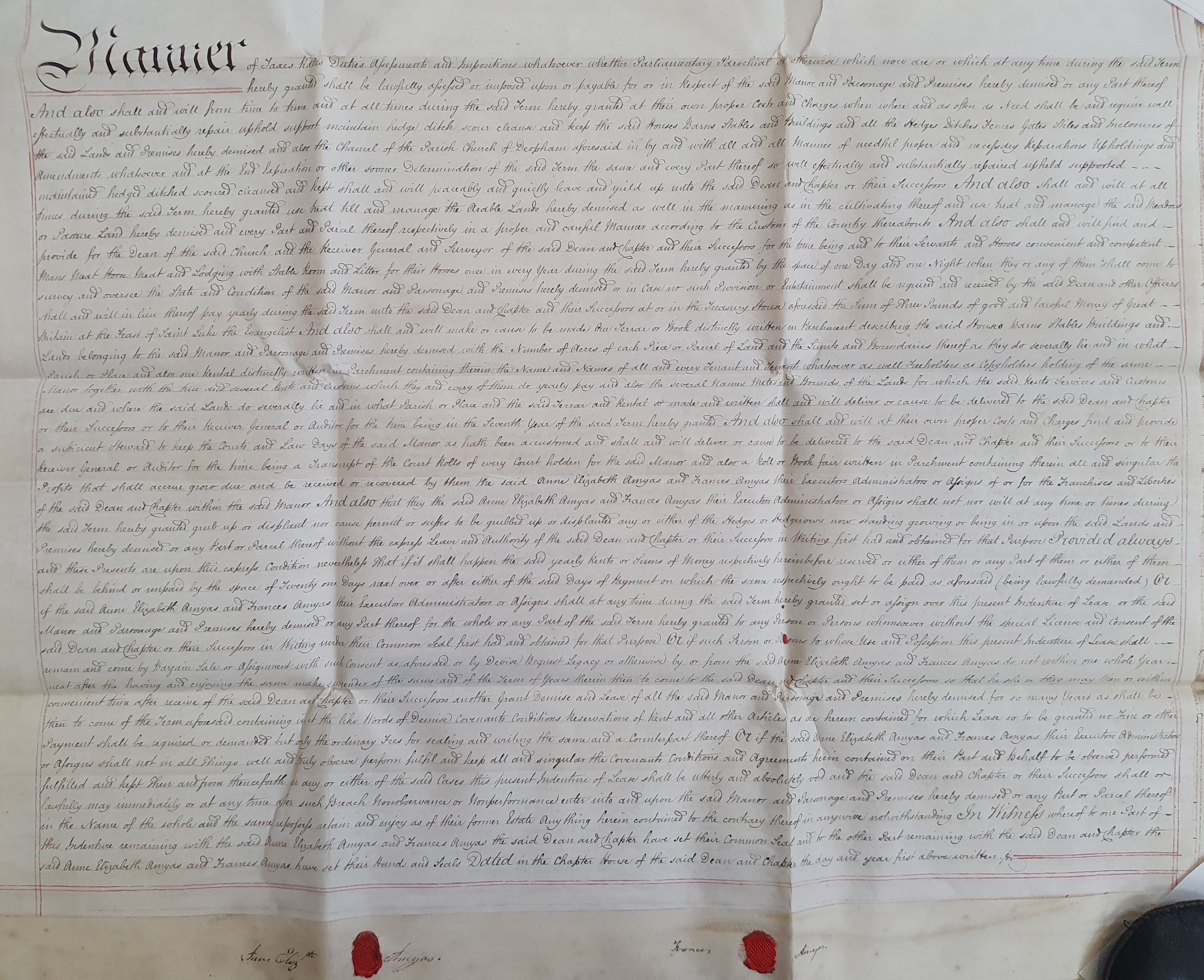 In Witness whereof to one Part of this Indenture remaining with the said Anne Elizabeth Amyas and Frances Amyas, the said Dean and Chapter have set their Common Seal and to the other Part remaining with the said Dean and Chapter the said Anne Elizabeth Amyas and Frances Amyas hath set their Hands and Seals