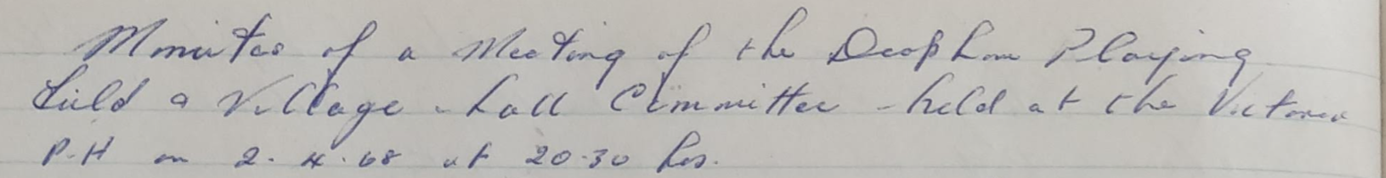 Following the end of the project to build a Village Hall for Deopham which was ratified at a Parish Meeting held on July 14th 1960, a new committee was created which inherited the funds raised for a hall with the new objective of providing the village with a playing field.