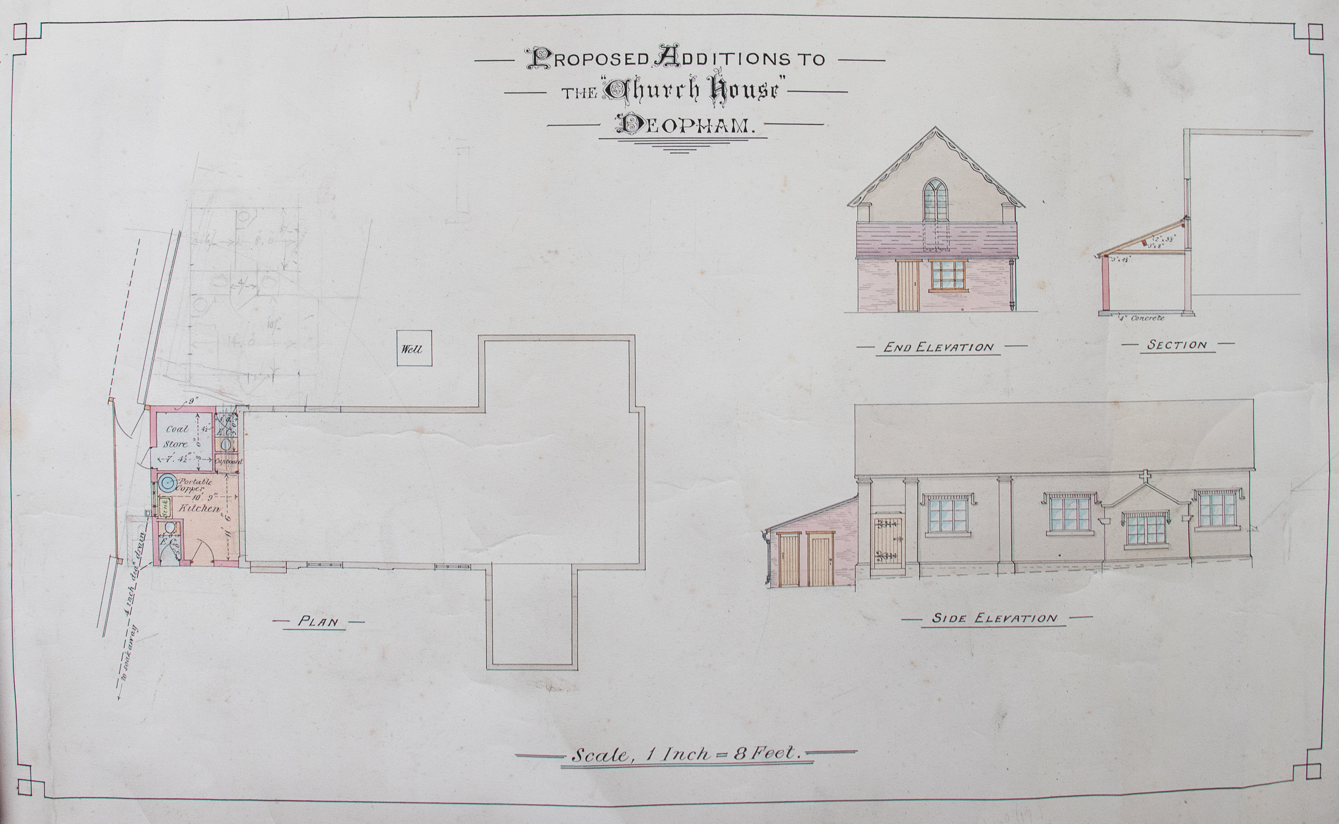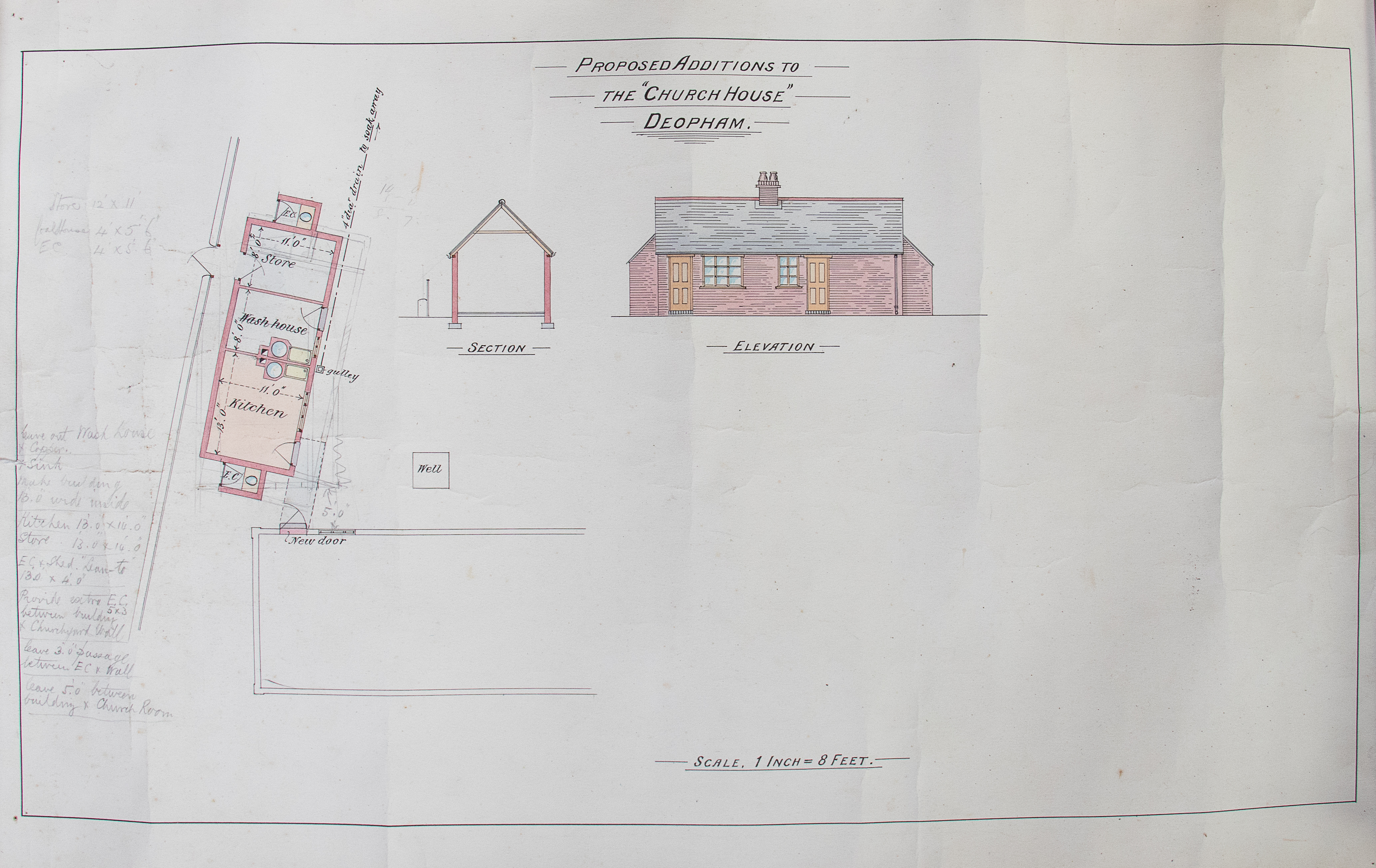 The following drawings of proposed enhancements to the old schoolroom never materialised. They are not dated; the current toilets are not shown – the planning application for these was submitted in March 1979. so clearly they are to be dated before that. The “coppers” that appear in all three versions imply that they could date prior to the arrival of electricity – which came to the church in 1961.