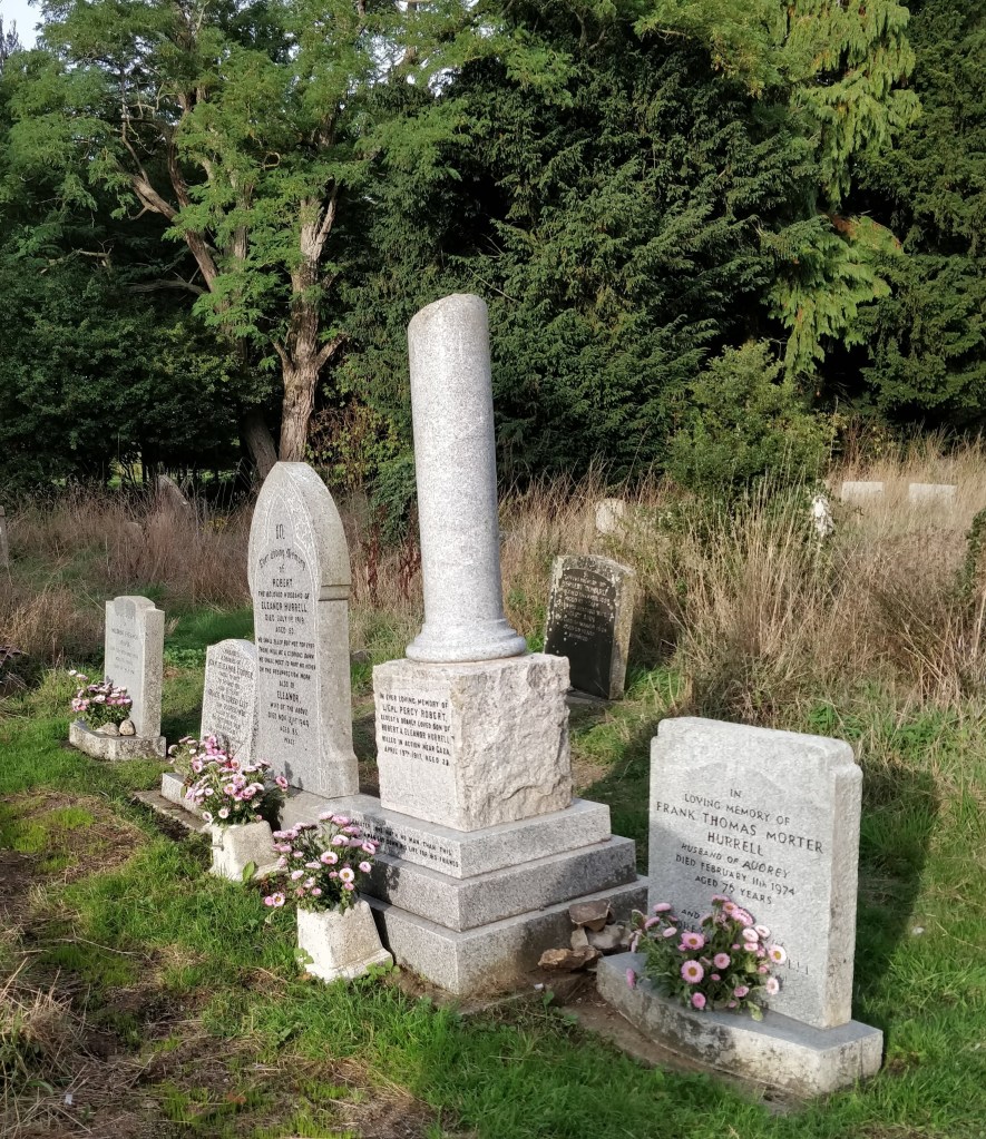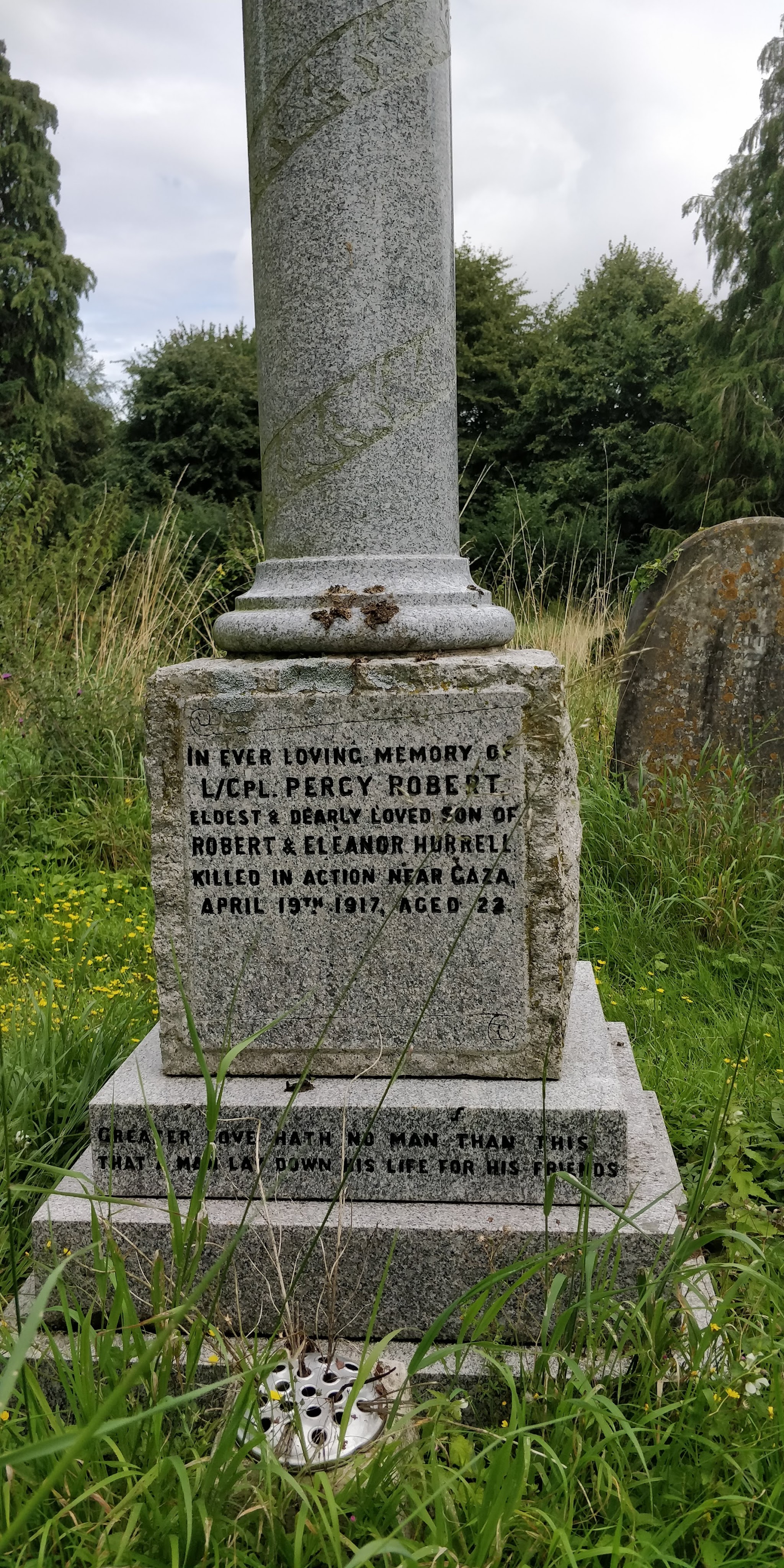 | L/CPL PERCY ROBERT HURRELL Son of Robert & Eleanor Killed in action near Gaza Died April 19th 1917 Aged 22 B58 ![]() | ROBERT HURRELL Died 1st July 1919 Aged 50 also Wife ELEANOR HURRELL Died 21st November 1949 Aged 85 B59 ![]() | ||