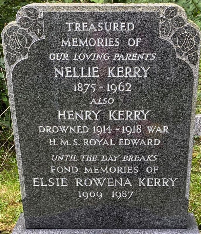 | NELLIE KERRY 1875 – 1962 also HENRY KERRY Drowned 1914-1918 War H.M.S Royal Edward and ELSIE ROWENA 1909 – 1987 B66 See also the memorial in church to Henry Kerry ![]() | FLORENCE MATILDA MINNS Born 14th February 1917 Died 25th January 1991 also LESLIE BARTON KITCHENER Born 10th March 1915 Died 14th June 2001 | LYDIA KNIGHTS Died July 8th 1830 Aged 32 | ROBERT KNIGHTS Died May 10th 1829 Aged 74 also Wife ELIZABETH KNIGHTS Died September 4th 1833 Aged 80 A58 |