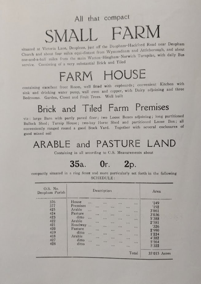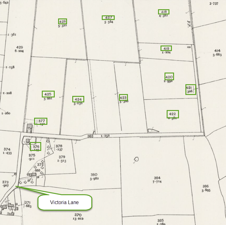 The second page of the above description lists the fields and property included in the sale by reference to the 1906 Ordnance Survey Map. The extract below shows the land detailed in the sales particulars: