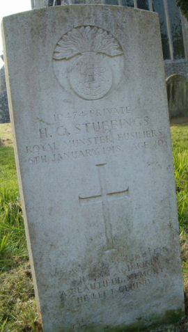 Private 10474 Horace Charles Stubbings was born in Hingham on 25th July 18951. He originally enlisted as 6665 in the 12th Lancers in Norwich on 28th August 1914, transferring to the 3rd Royal Munster Fusiliers on 2nd June 1915. He served with the Mediterranean Expeditionary Force from 17th July 1915 but, on 4th August 1915, at Achi Baba, an exploding shell blew inside the trench and buried him. He was sent home on 13th September 1915 where he was treated at the Beaufort War Hospital in Bristol and discharged no longer fit for army service on 4th January 1916 as a result of shell concussions (epilepsy).