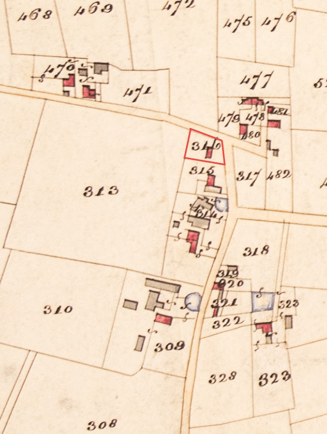 This map is confused by the fact that north is to the left. The site of the Jubilee Cottages is piece no 316.