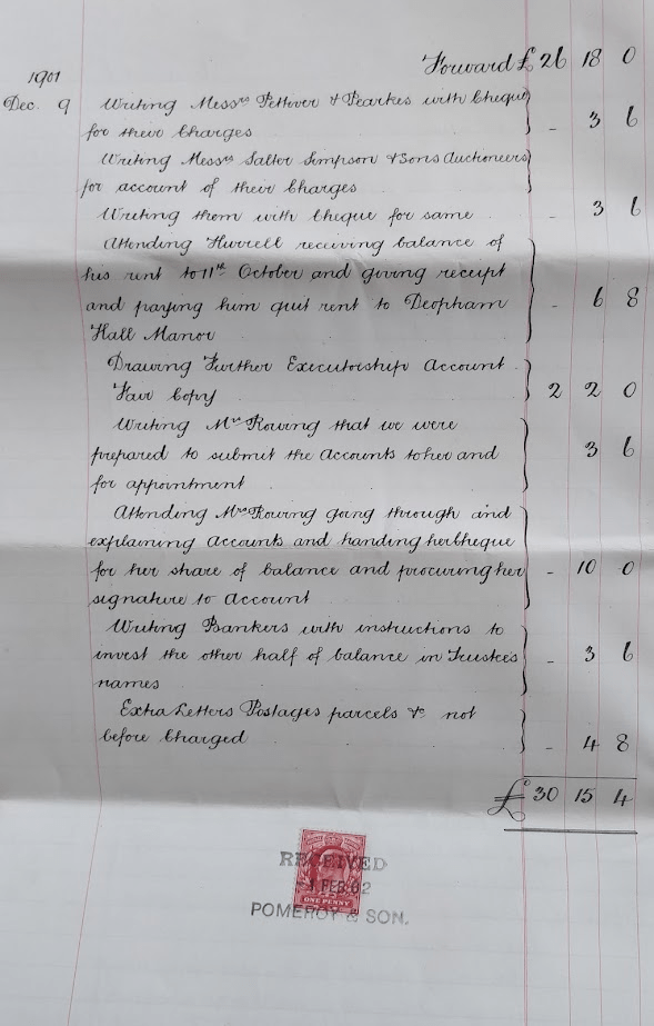 Pomeroys’ Account following Mary Ann Rowing’s death