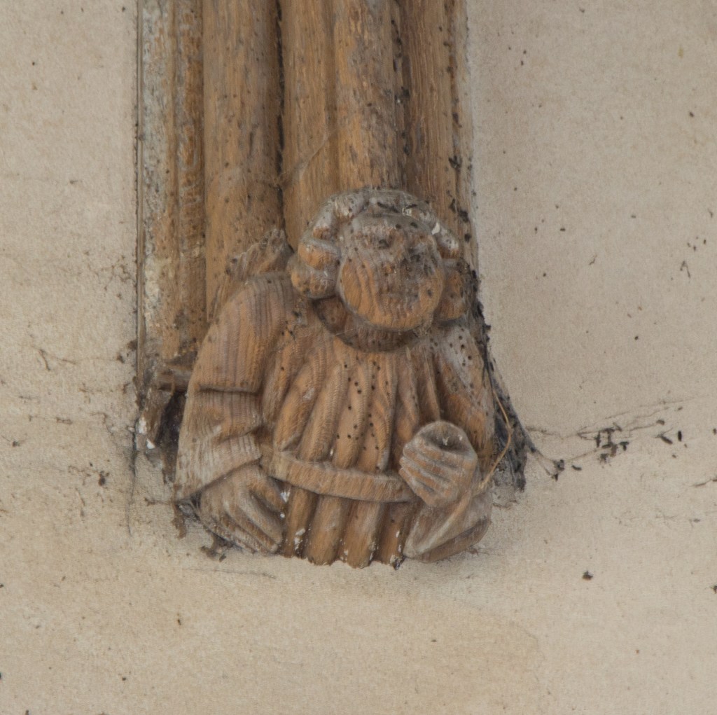 Some mural paintings have been found on the walls, one over the chancel arch. A shield, six feet high, with supporters lion and griffin, nine feet high; royal arms, date 1579, E.R. 21. A copy has been taken by Miss Wanklyn and Miss Evans (the vicar’s niece), and sent to the Herald’s College, by which the arms are reported to be those of Queen Elizabeth. Further paintings are discernible on the north aisle.