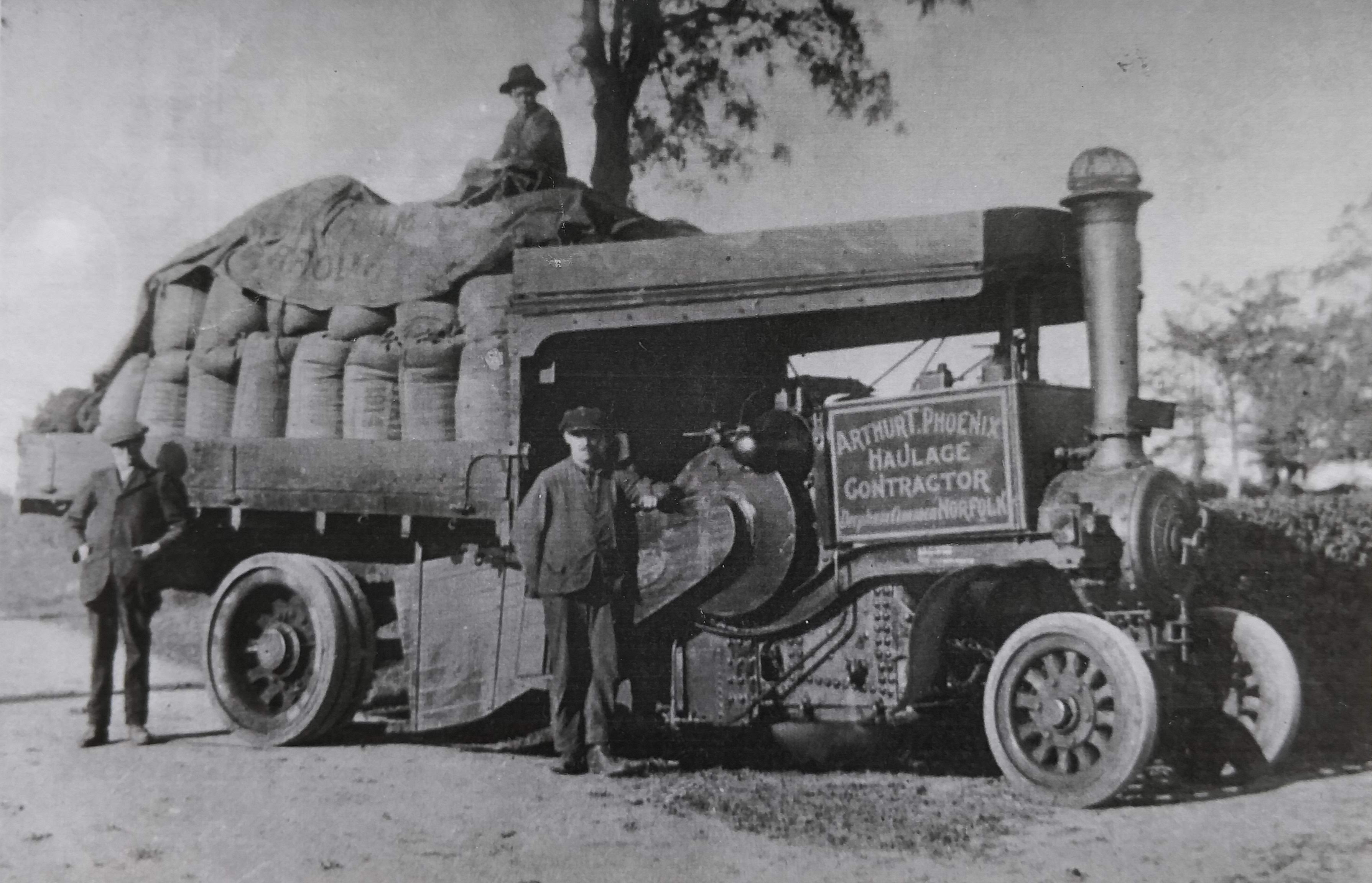 Phil Long, who forwarded this photo, says that Jack Keatley had quite a big milk round business based at their thatched cottage located in Hingham Rd, just up the road from Shaw’s Farm. There were about 5 garages to house the vans on site as well as a petrol pump. The Keatley children and their cousins are shown here in front of the van.