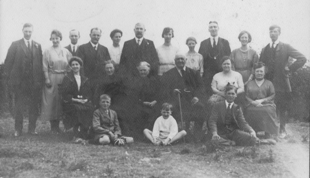 Back Row: Frank Hurrell, Daisy King, Cecil King, William Hurrell, Martha Baldwin, Charles Hurrell Junior, Ada Baldwin (daughter of Martha), Phyllis Hurrell (wife of Arthur), Arthur Hurrell (son of Charles), Myrtle Peacock, William Liddelow Peacock;