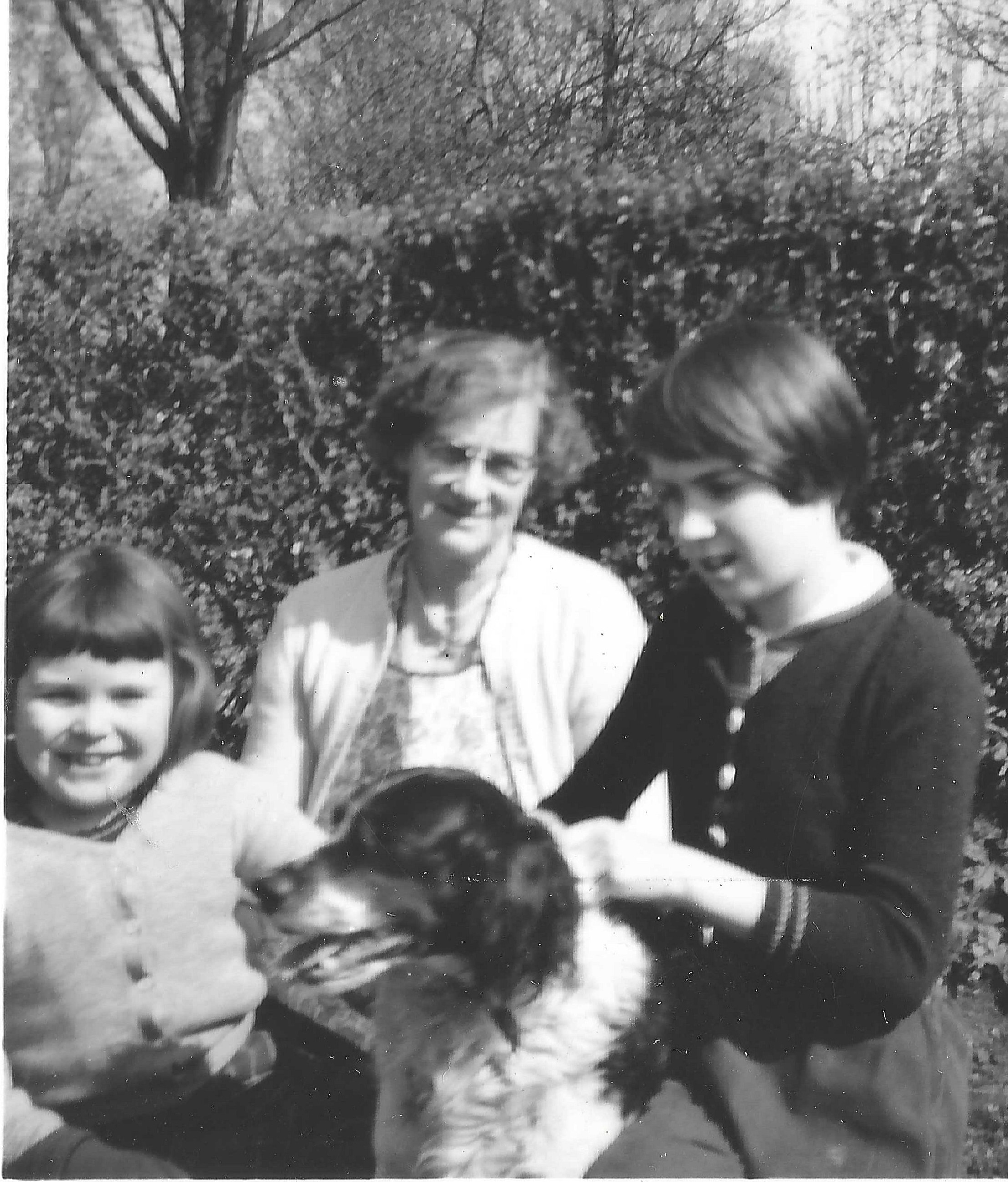 Amy Phoenix-Stone (née Lloyd) with her sister Phyllis Long (née Lloyd) and Snowball: