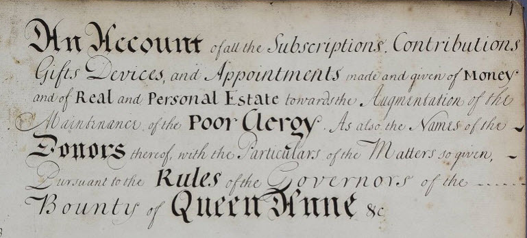 Queen Anne’s Bounty for the Augmentation of the Maintenance of Poor Clergy was established in 1704 with the aim of tackling the most extreme examples of poverty among the beneficed clergy of the Church of England. The Church of England leadership wanted to strengthen their resources in response to the challenges of nonconformism and Roman Catholicism. It was widely felt that clerical poverty was a significant impediment to the church’s activity and therefore aimed to: