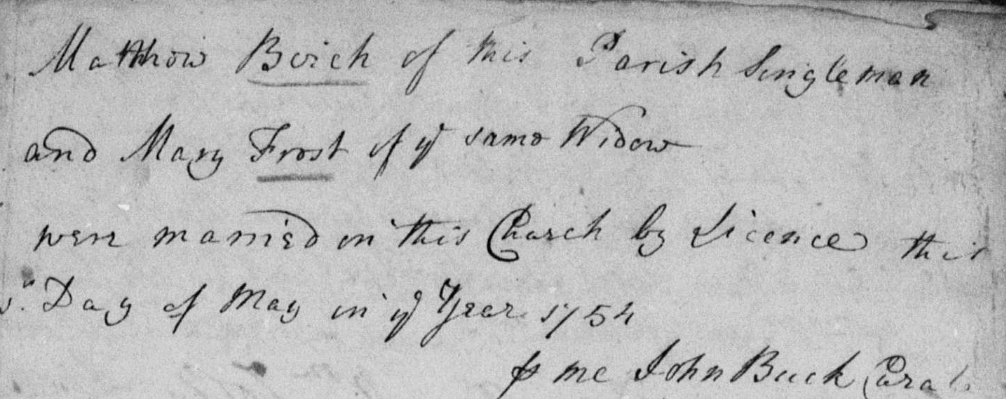John Buck appears in the Deopham parish register as the Curate officiating at a marriage in 1754: