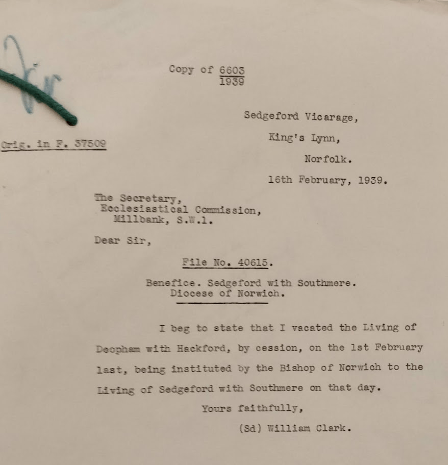 The Rev. W Clark served for some years on the Forehoe and Henstead R.D.C and the Docking R.D.C. He leaves a widow and a daughter.