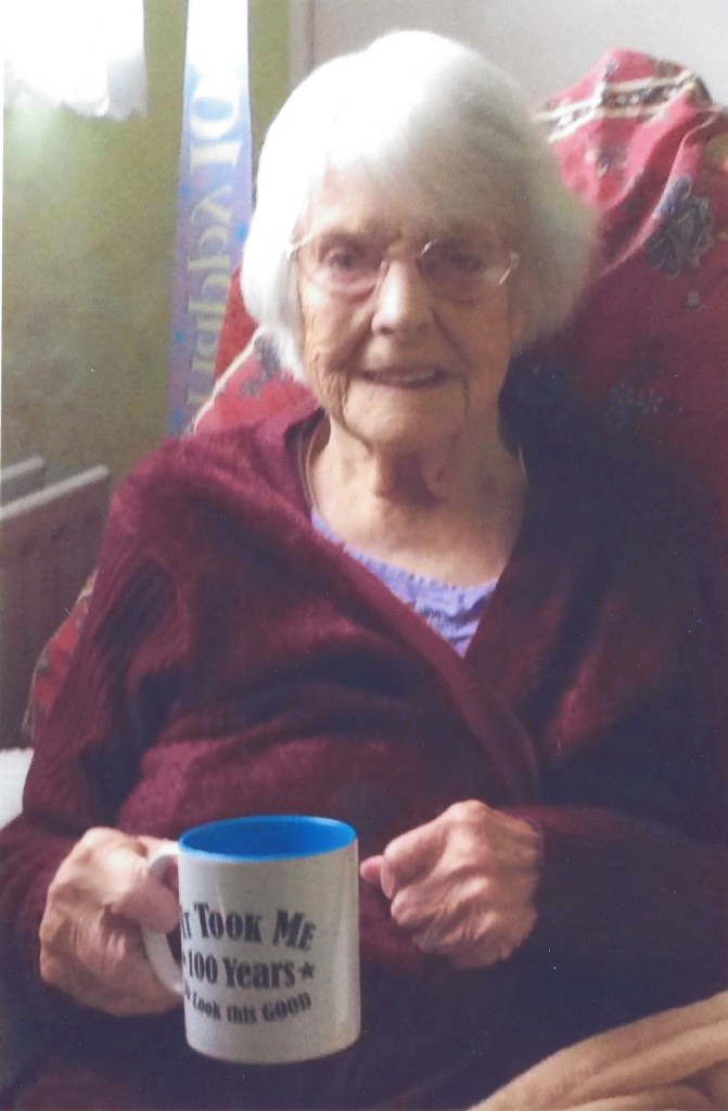 After the children left home Royal enjoyed being a member of Deopham W. I., taking part in the plays (doing her Norfolk dialect) and playing for their darts team. After retiring she enjoyed gardening, and spending time with family, shopping and family get togethers. After having a pacemaker fitted at 99 she could still be seen sitting weeding in her garden; unfortunately she fell and broke her hip three months before her 100th birthday and had a partial hip replacement. However, after her stay in hospital, and in Ogden Court, she was able to return to her home about six weeks later, and on February 17th 2016 she received her card from Queen Elizabeth which she treasured.
