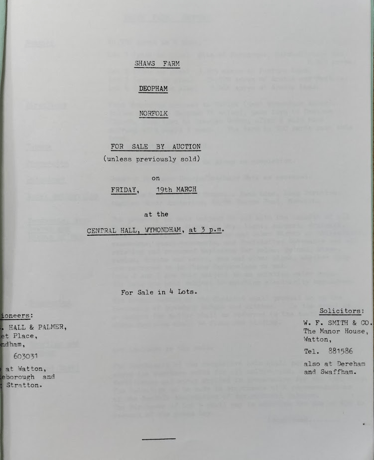 These particulars are published by courtesy of the Wymondham Town Archive: their ref BF61.