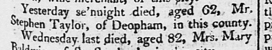 Bury and Norwich Post 17 February 1808: