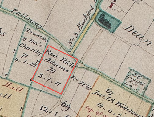 The map drawn up in 1814 following the implementation of the Enclosures Act shows the site of the house as being owned by the vicar at that time, the absentee Rev. Richard Adams. The ownership was as a result of, and for the duration of, being vicar of Deopham and therefore passed to the next incumbent.