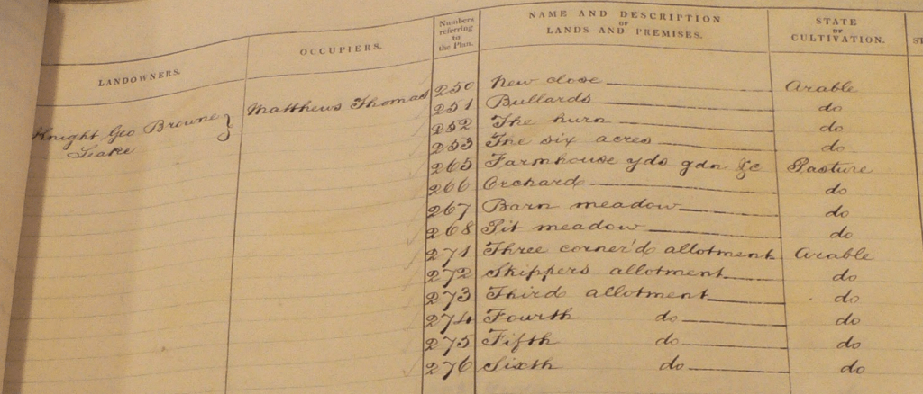 The following have been extracted from the 1843 tithe map and its corresponding analysis: